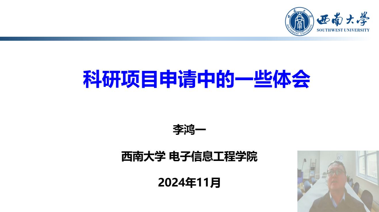 11月21日下午,PA视讯集团官网在A104报告厅召开了2024年度国家自然科学基金总结暨2025年度申报交流会。会议邀请西南大学二级教授、博士生导师、电子信息工程公司经理、国家高层次人才、国家优秀青年科学基金获得者李鸿一教授作专题报告。副经理马锴主持会议,全院教师百余人参加会议。