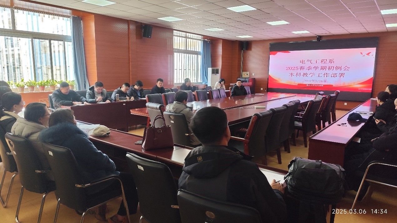2025年3月6日星期四下午,电气工程系组织全系教工在电气馆D207会议室召开春季学期本科教学工作研讨会,系主任曲正伟主持会议。