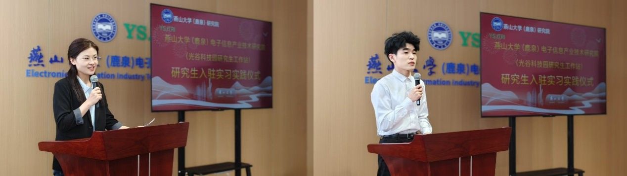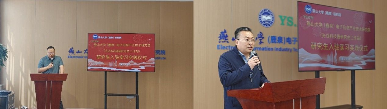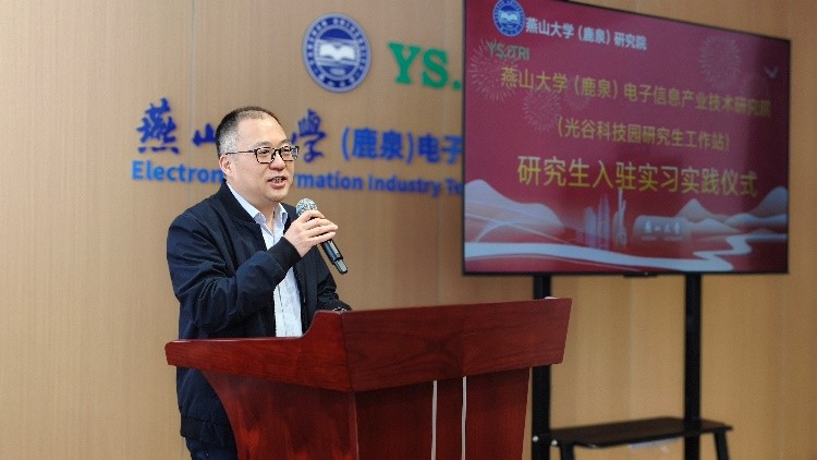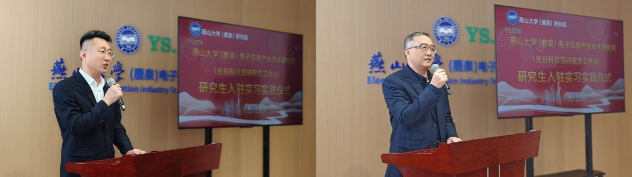 研究生工作站的高质量发展,离不开企业的全方位支持。此次工作站实习实践活动得到了河北向阳电子集团有限公司和石家庄数英仪器有限公司的鼎力相助。在启动仪式上,向阳电子张敬涛总经理和数英仪器邓志成董事长先后发表致辞,介绍了企业在实践岗位设置、导师配备、生活保障等方面的具体措施,也表达了对校企联合育人模式的高度认可与期待。