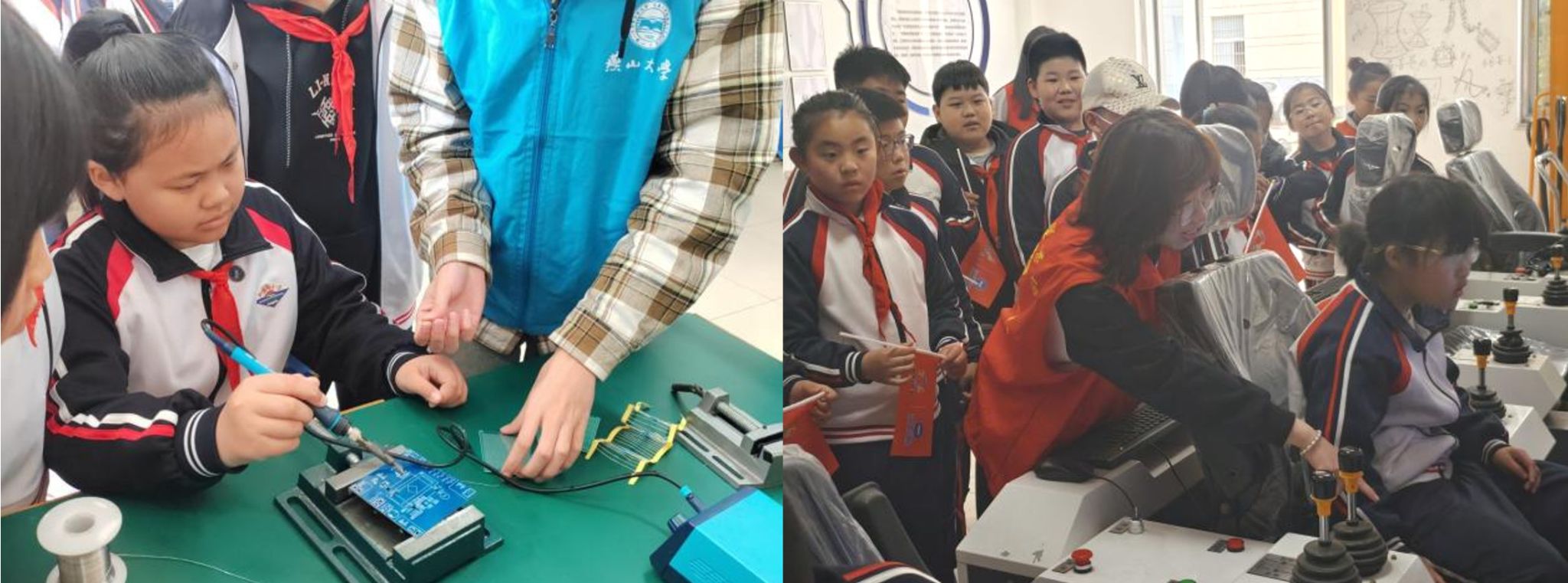 在电子实验中心(电子国家级实验教学示范中心、河北省虚拟仿真实验教学中心、河北省科普教学示范基),公司的专业教师、志愿者们为孩子们开启了一段探寻“智能智造”奥秘的旅程,轨道上飞驰的自巡线智能车、充满无限创意的X30四足机械狗和港口门机变频调速及数字孪生虚拟仿真实验平台引得阵阵惊叹。这种近距离“沉浸式”科普体验,不仅激发了孩子们对智能制造技术的好奇心与求知欲,更深化了对“智造”内涵的理解。孩子们纷纷表示,这场科技体验之旅让他们感受到先进制造技术的魅力,点燃了自己的科学梦想。
