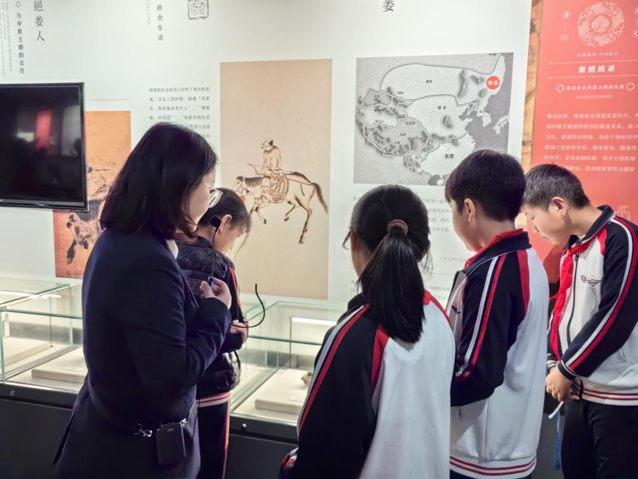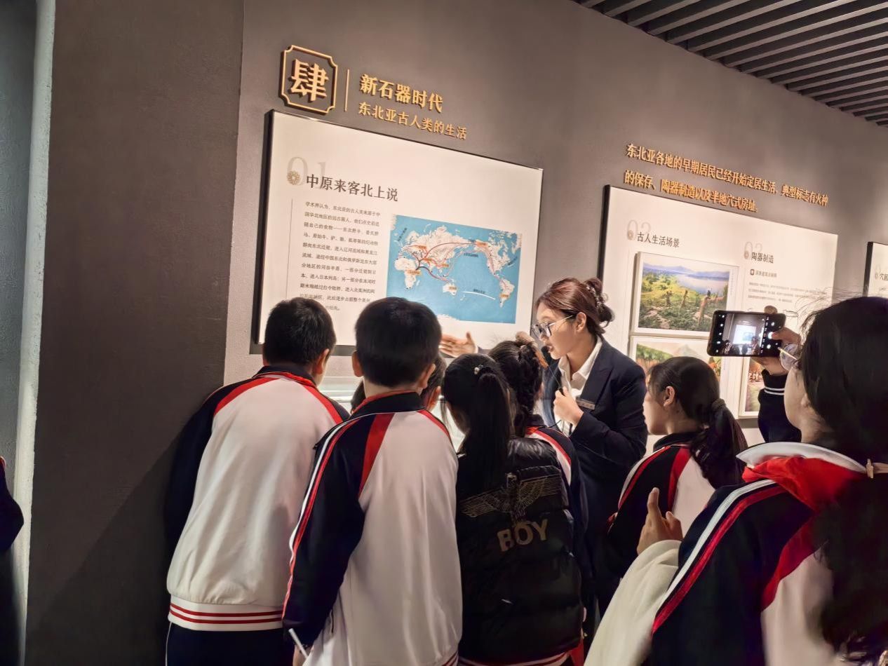 东北亚古丝路文明博物馆的讲解员带领孩子们有序参观了古生物化石陈列厅、旧石器时代陈列厅、新石器时代陈列厅、东北亚古丝路沿线诸民族各类文物陈列、近现代文物陈列等展厅,通过生动有趣的讲解激起孩子们对文物的强烈兴趣,感受了东北亚古丝路文明的丰富内涵和独特魅力。