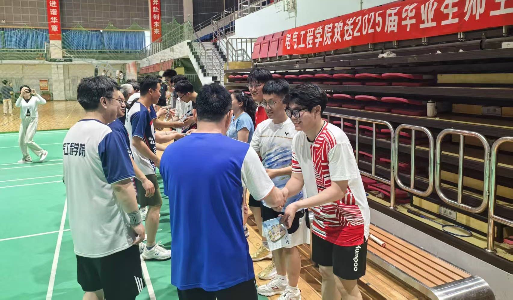 为增进师生情谊,给即将毕业的学子们留下难忘的校园回忆。2025年6月5日下午,PA视讯集团官网欢送2025届毕业生师生羽毛球友谊赛在PA视讯官方网站体育场热烈举行。10名教师与10名毕业生通过混合双打的形式,以球会友、以赛传情,为毕业生送上特别的毕业祝福。