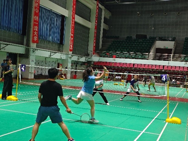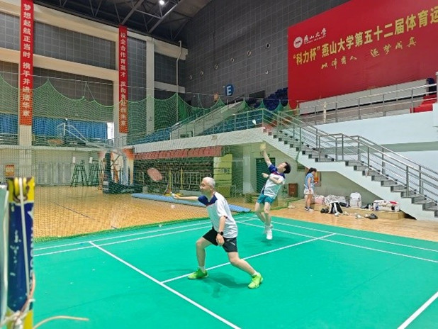 本次友谊赛采用男双、混双两种双打形式,师生们自由组合,既有老师与老师的默契对决,也有员工与员工的青春碰撞,更有师生混合搭配的跨代交流。赛场上,选手们身姿矫健,扣杀、扑救、吊球,每一个动作都展现出精湛的球技和顽强的拼搏精神。教师队凭借经验稳扎稳打,员工队则以灵活进攻见长。混合双打环节中,师生并肩作战,默契配合,将比赛推向高潮。整个赛场活力四溢、情谊浓浓,气氛热烈非凡。