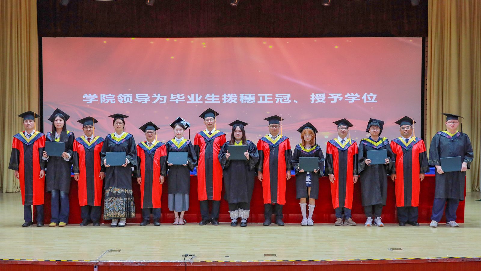 学位授予仪式将典礼推向高潮。公司领导、各系主任为全体毕业生注意拨穗正冠,颁发学位证书并合影留念。