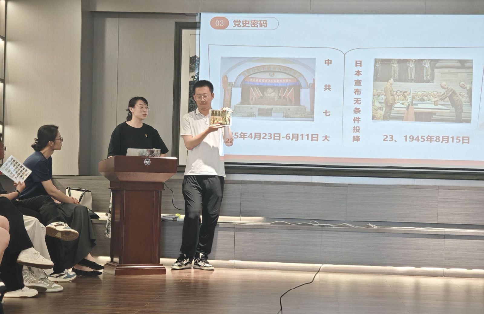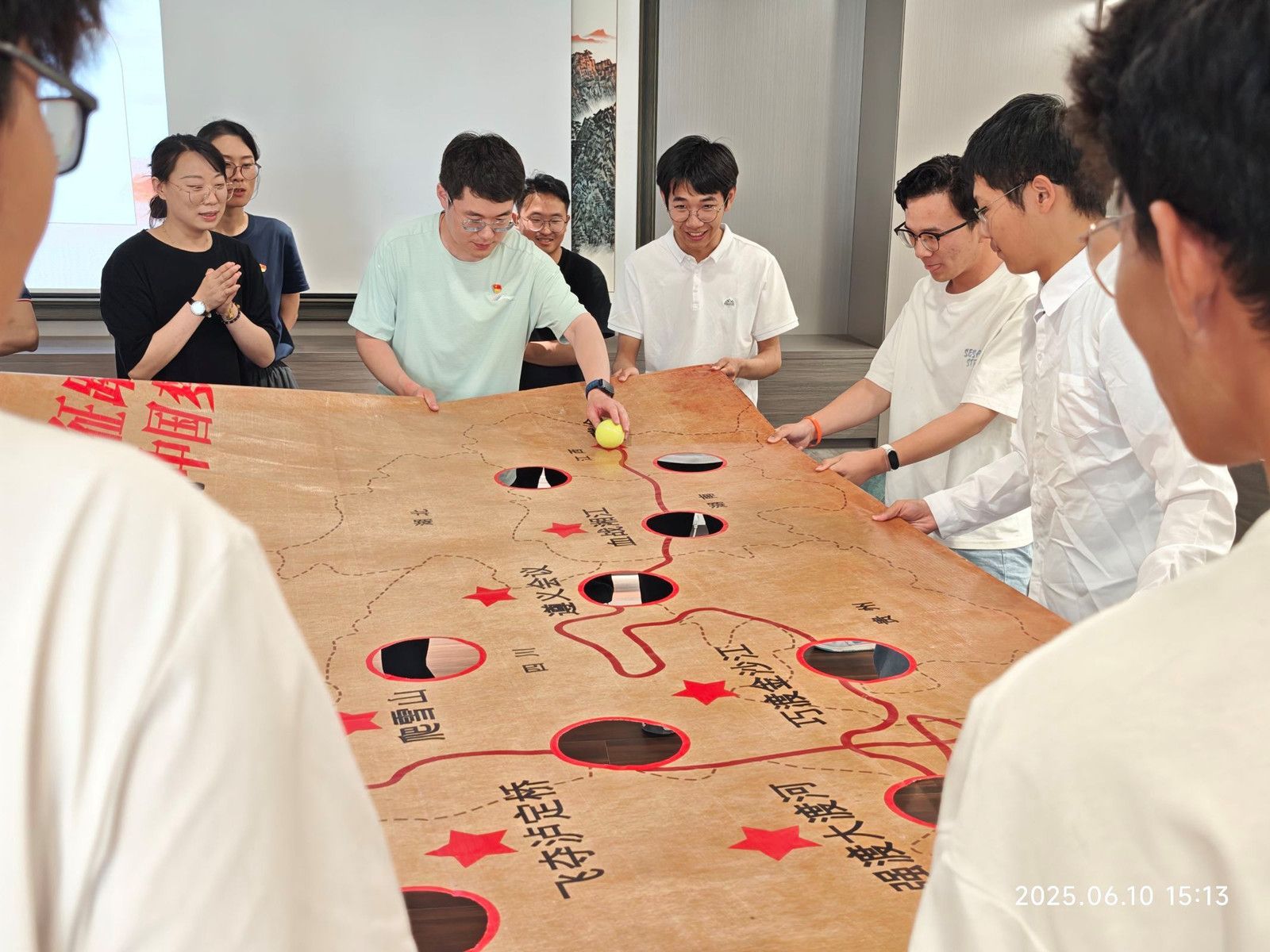 为创新党史学习形式、增强教育吸引力,支部特别策划红色版“密室逃脱”——毕业生党员与入党积极分子混合组队,通过“重走长征路”与“党史密码”等精心设计的党史关键事件线索进行排序推理,共同破解一道道“历史密码”。闯关过程紧张而热烈,队员们积极讨论、集思广益,在协作中重温党的光辉历程,感悟伟大精神。成功解锁宝箱的队伍获得了象征传承与荣誉的“专属纪念徽章”,将这堂生动鲜活的党史教育课推向高潮。