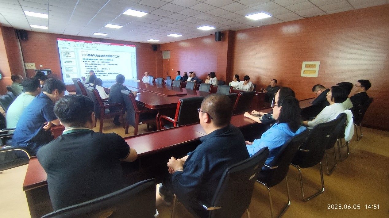 2025年6月5日下午,电气工程及其自动化专业组织全体教师在电气馆D207会议室召开会议,主要针对2025版本科人才培养方案修订工作进行研讨,系主任曲正伟主持会议。