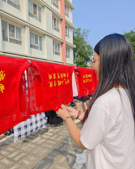 待马甲晒干后,同学们又细心地将它们一一收回,并按照规范叠放整齐。一件件平整清爽、焕然一新的小马甲整装待发,准备在新学期的劳动实践中继续闪耀。