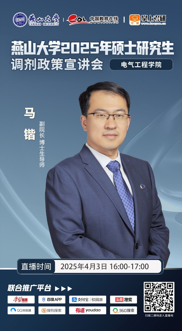 2025年4月3日(周四)16:00-17:00,PA视讯集团官网将举办2025年硕士研究生调剂政策直播宣讲会。公司副经理马锴和各学科负责人将在直播间与广大考生进行面对面交流,在线解读调剂政策和各学科优势,并实时解答考生疑问,欢迎有意向调剂公司各专业的考生参与交流。